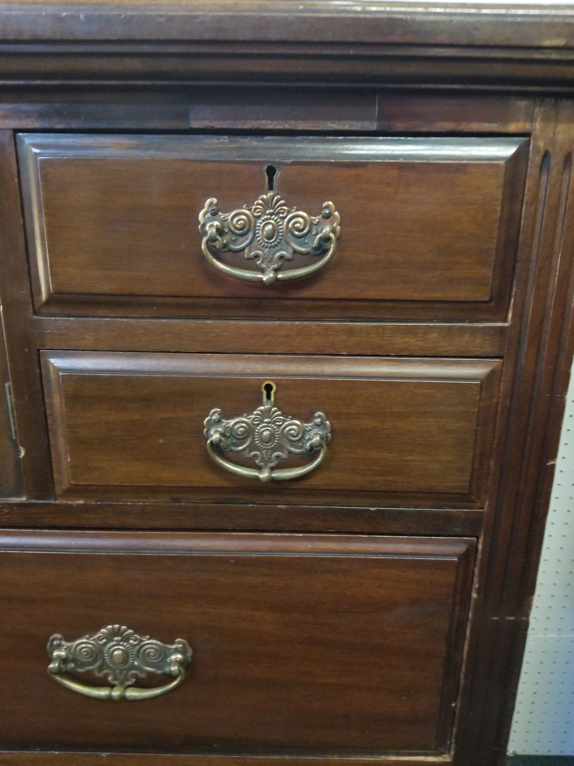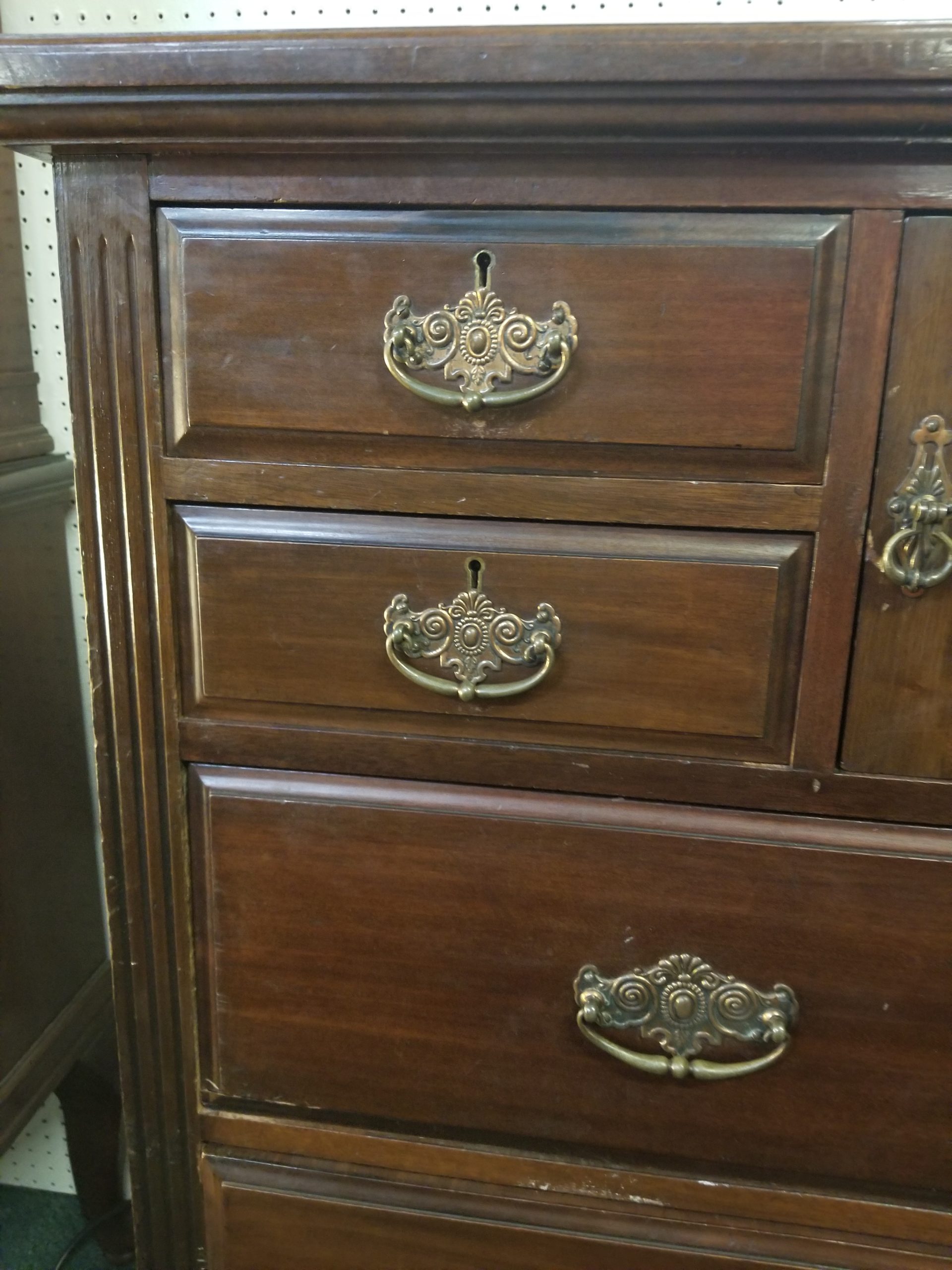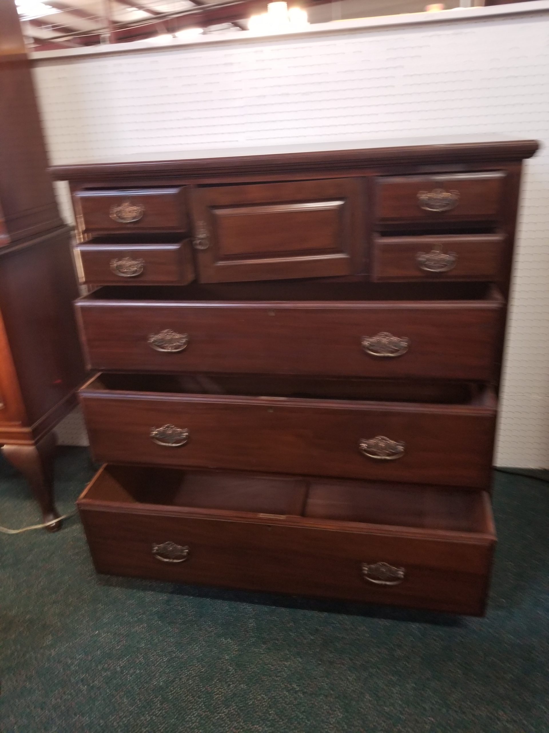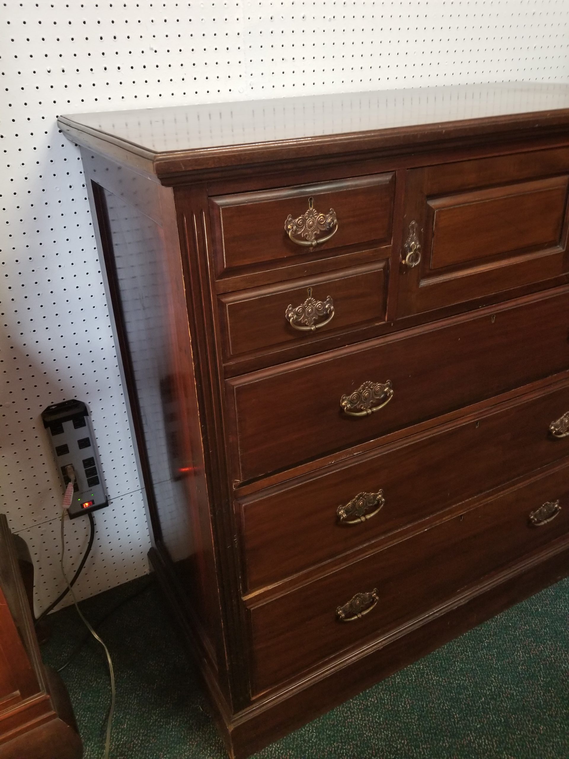 Antique 19th century mahogany chest of drawers, it has a central door and it’s flanked by four small drawers over three drawers.