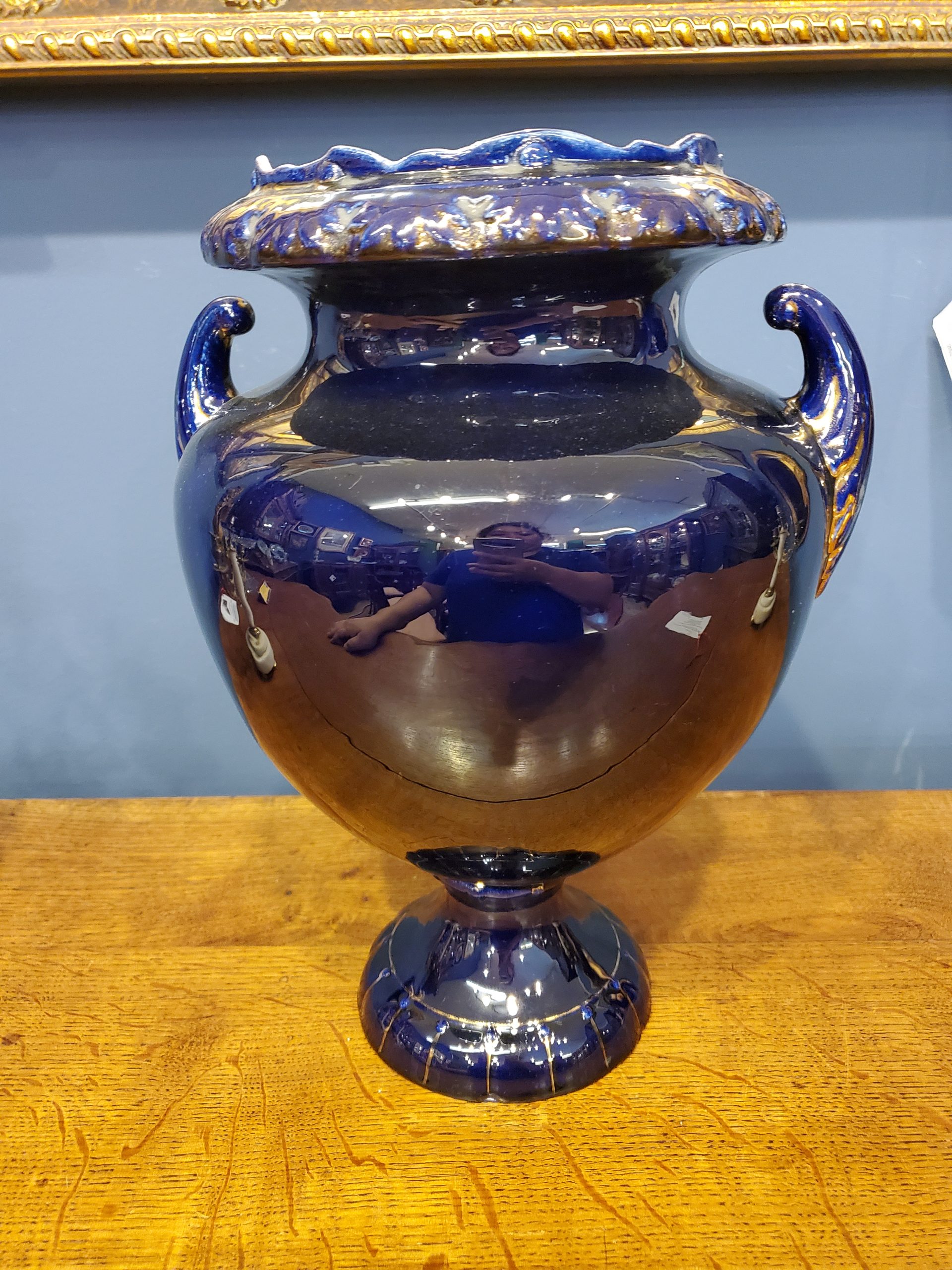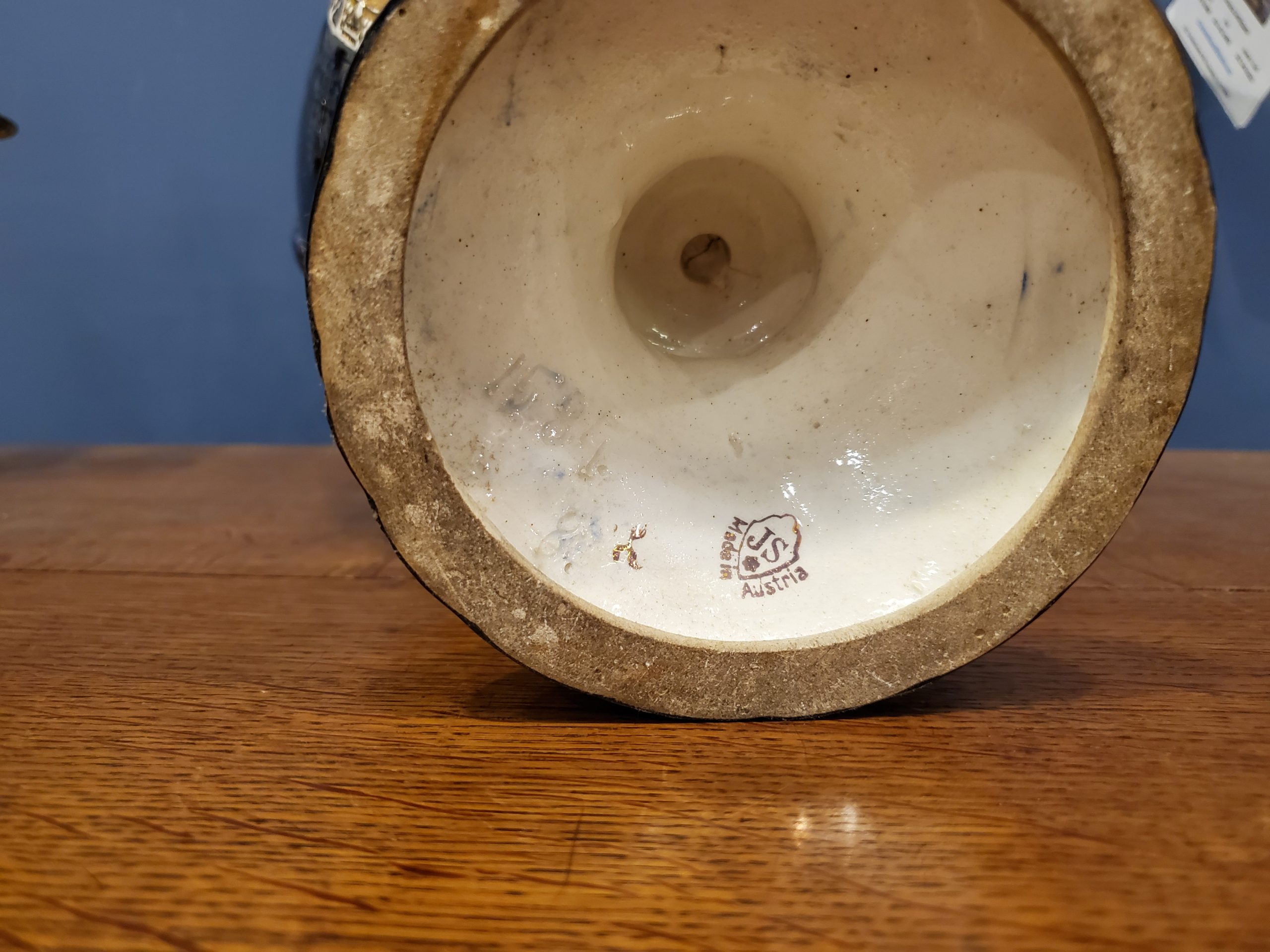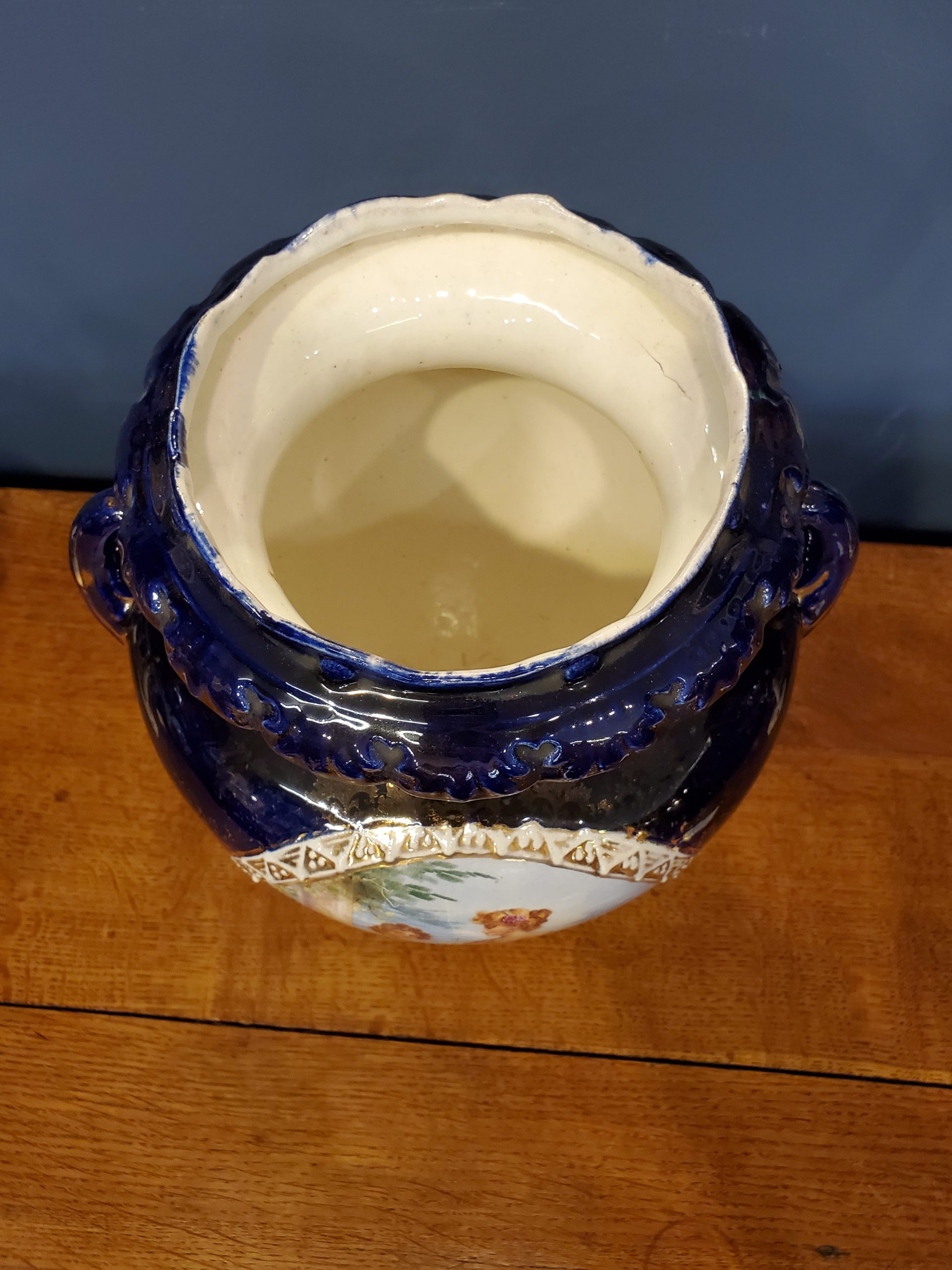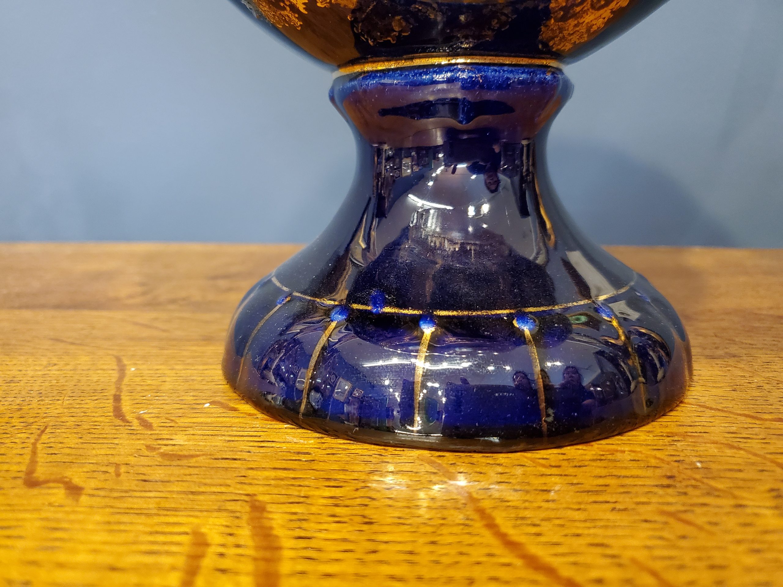 An antique Austrian Cabinet Vase with a central medallion of two maidens surrounded blue and gilt border on a cobalt background.