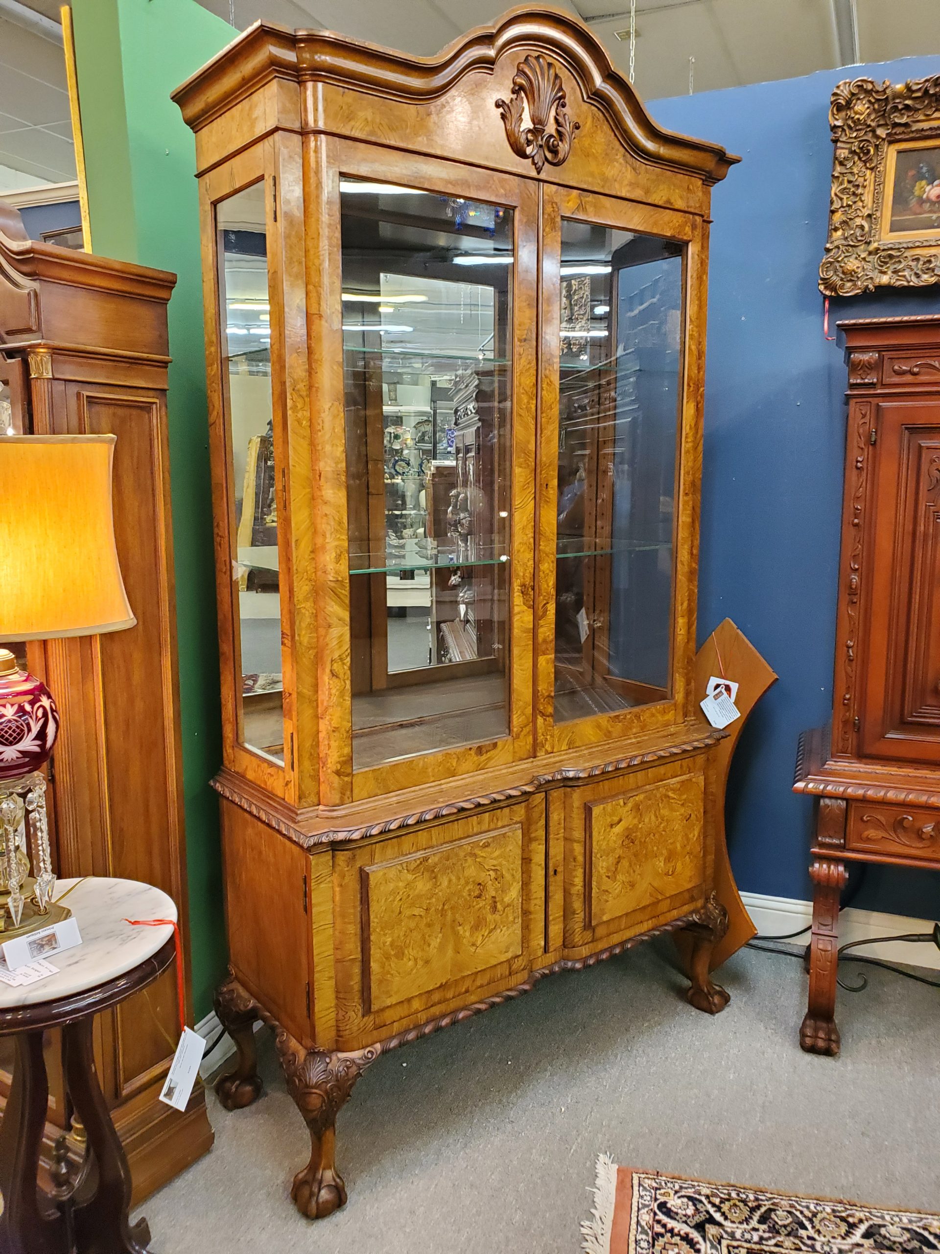 Antique Early 20th Century Ball & Claw Display Cabinet