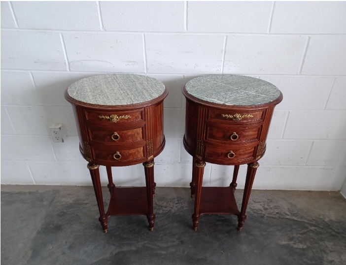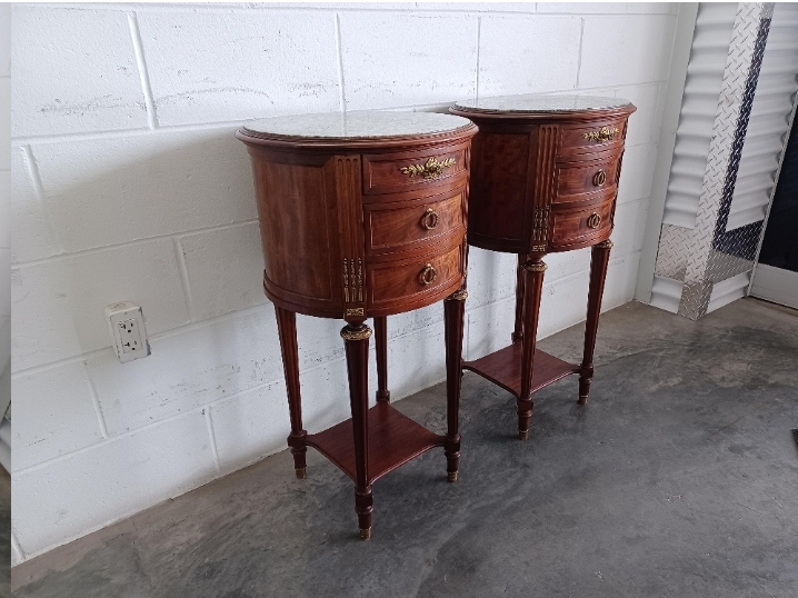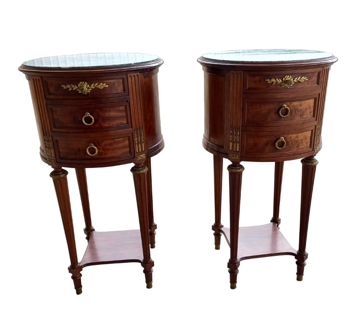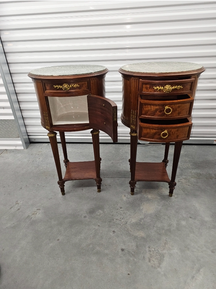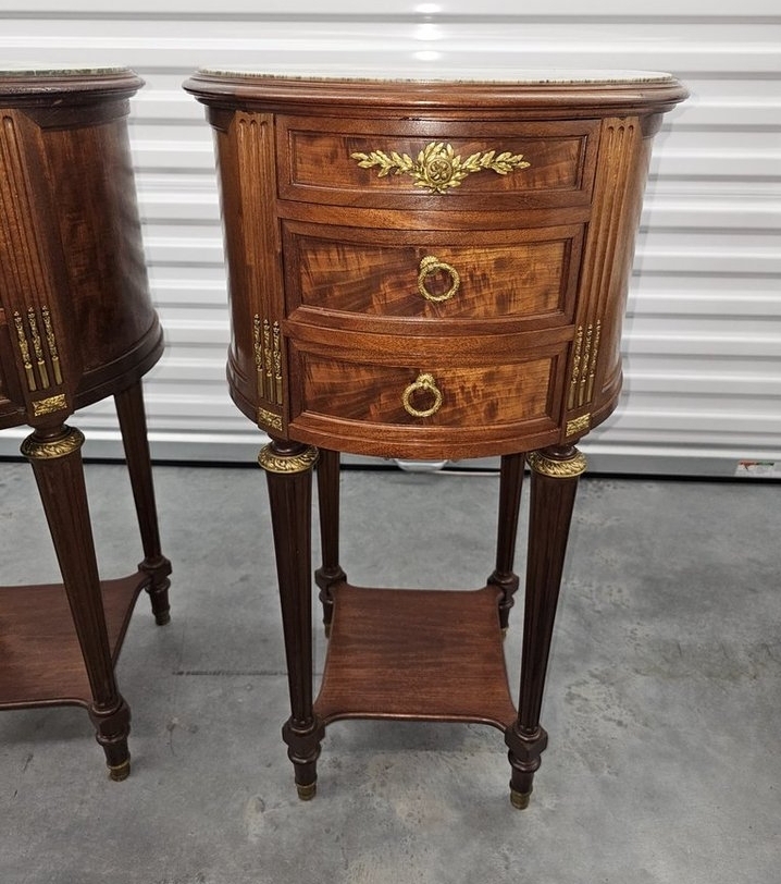 Antique Louis XVI Style Marble Top Nightstands (Pair)