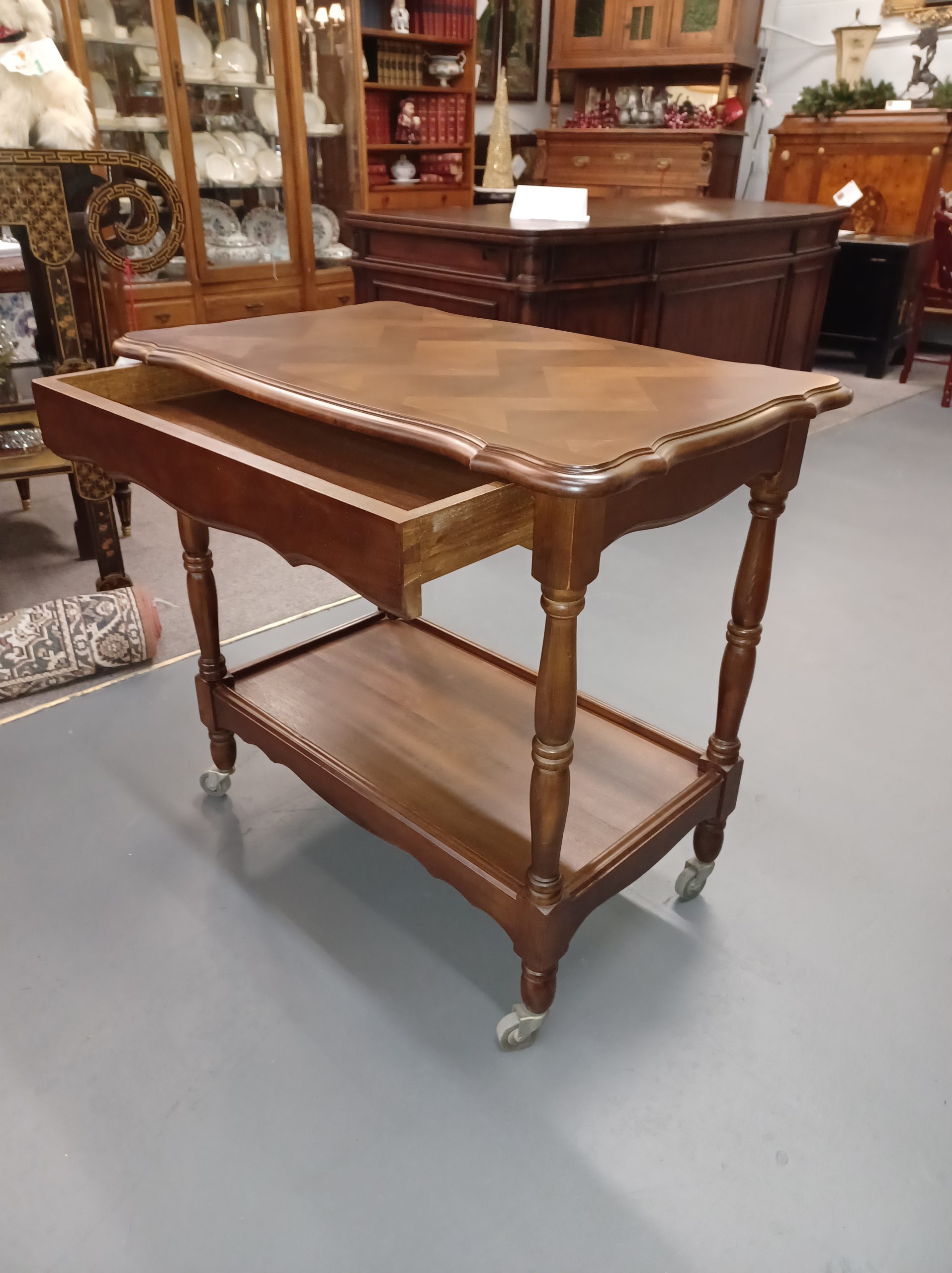 This trolley would be excellent for entertaining as dessert or drink cart. Circa mid 20th century.