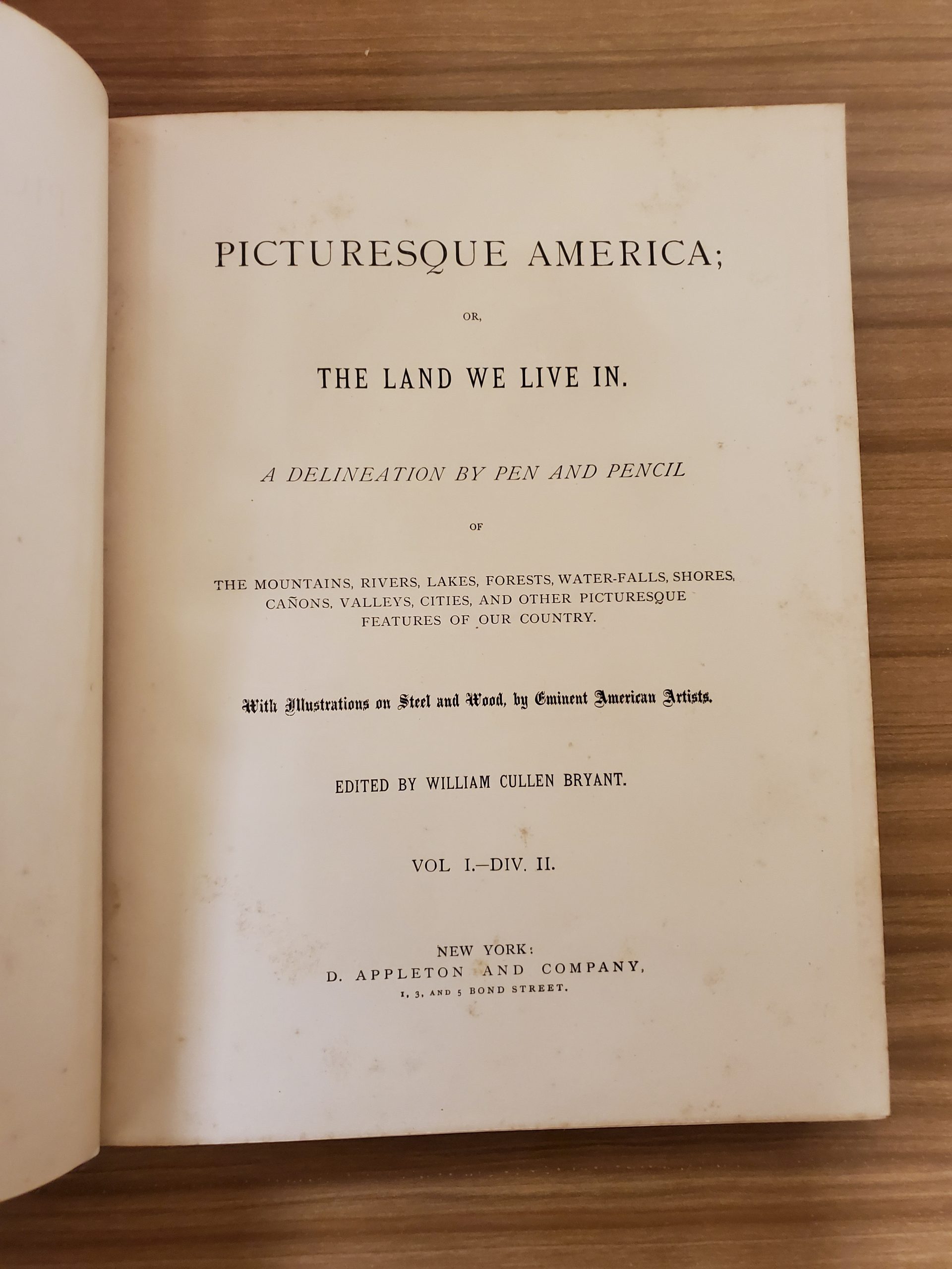 A Delineation by Pen and Pencil of the Mountains, Rivers, Lakes, Forests, Water-Falls, Shores, Canons, Valleys, Cities, and Other Picturesque Features of Our Country. With Illustrations on Steel and Wood by Eminent American Artists. Edited by William Cullen Bryant. Published in New York by D. Appleton and Company (1872).