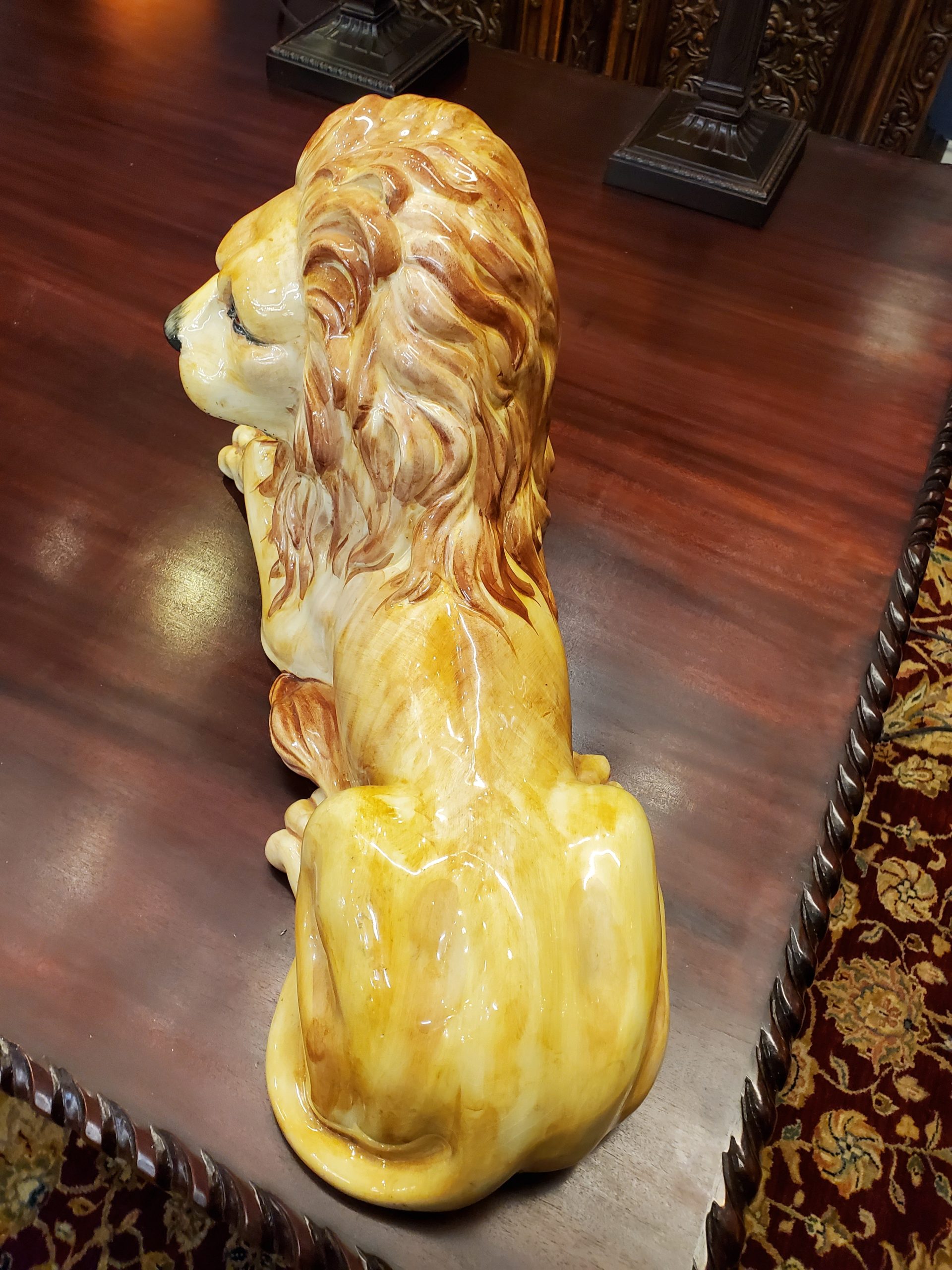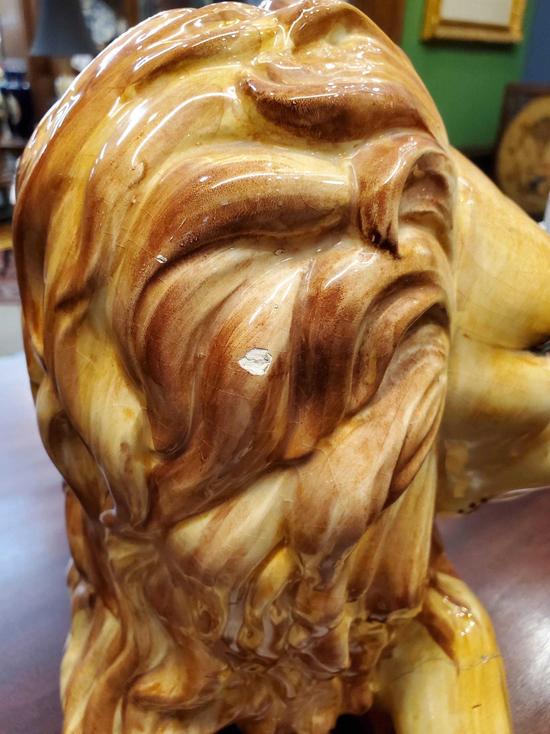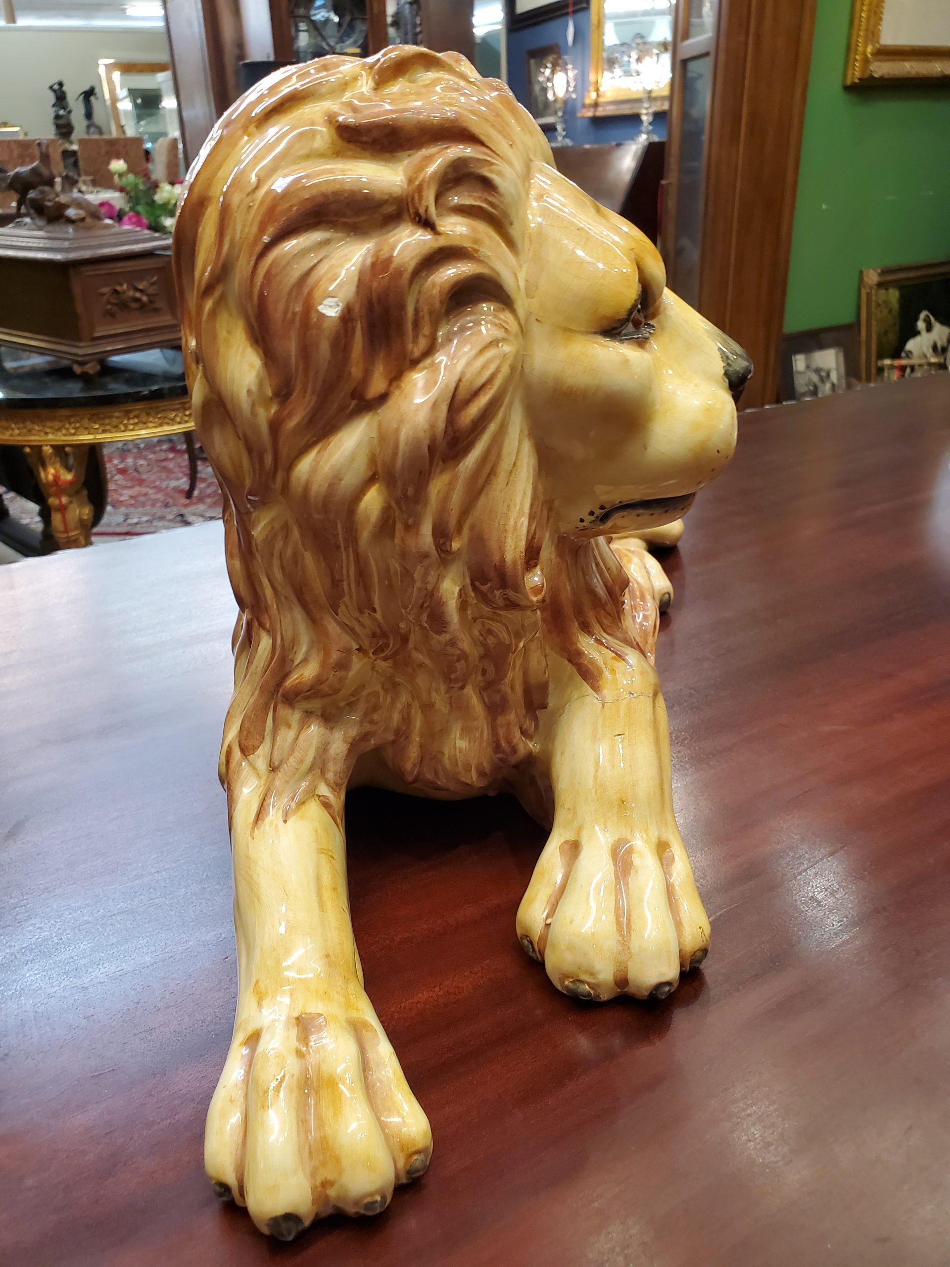 The lion has a small chip on the back of his head and a paw has been restored.