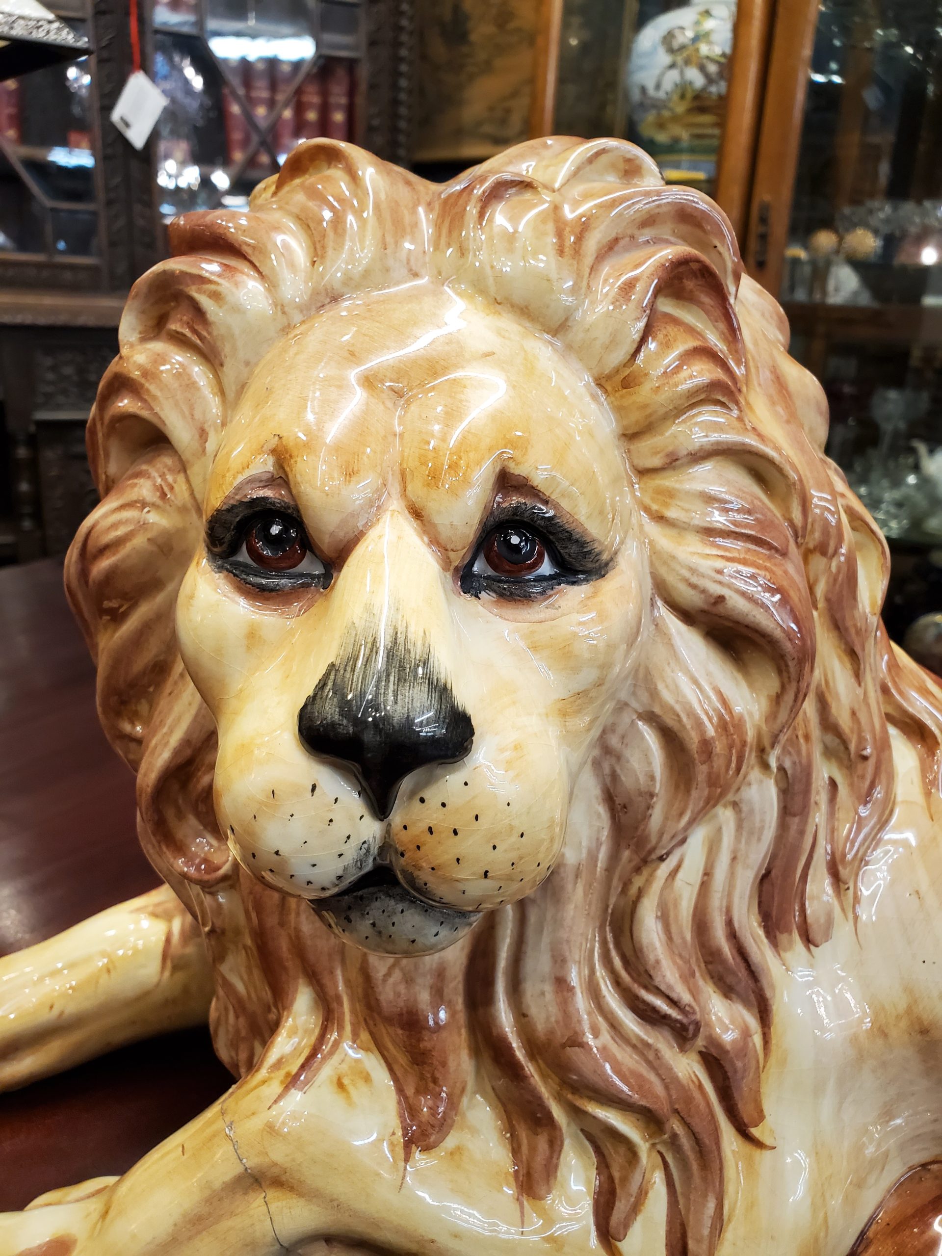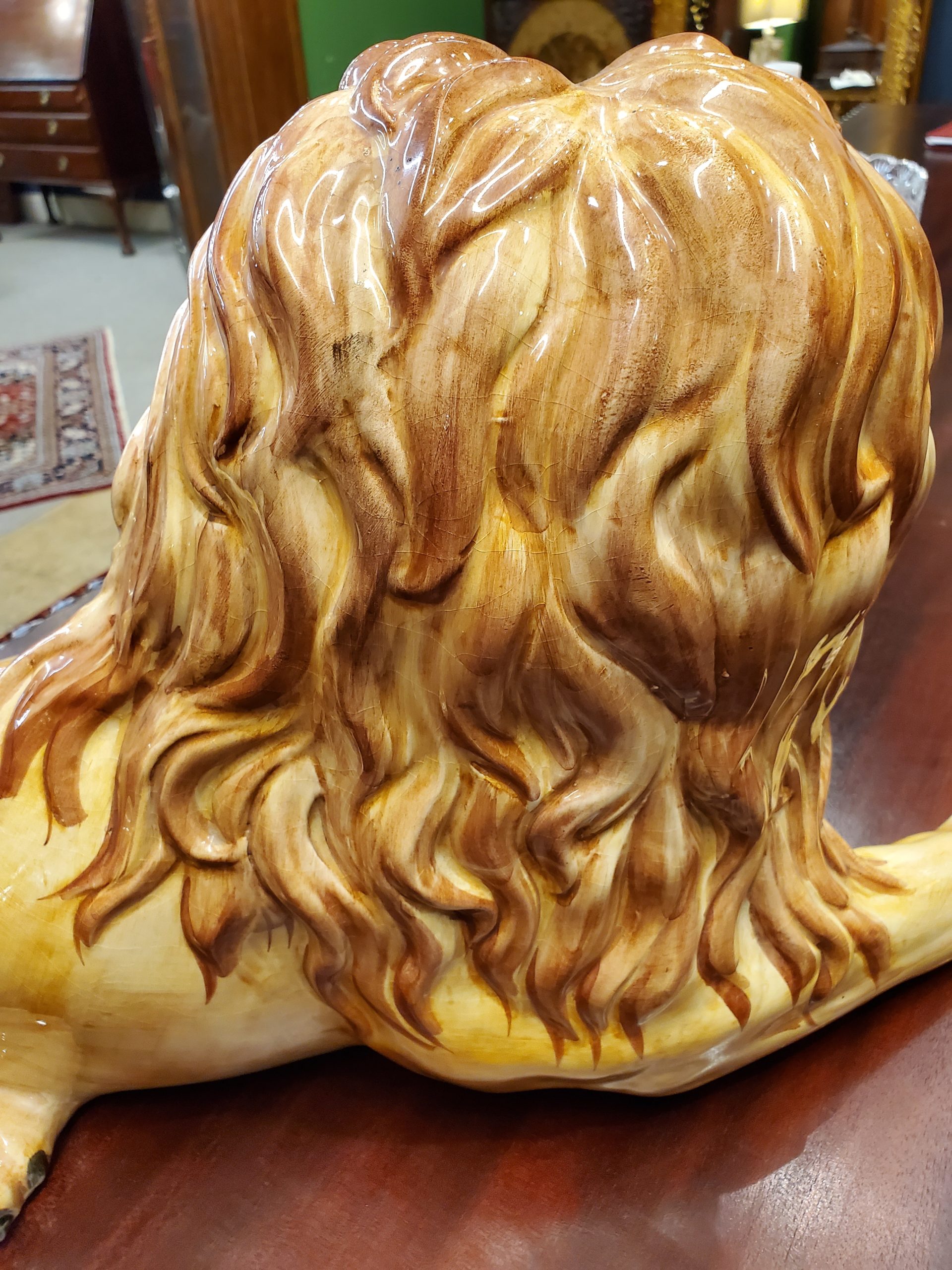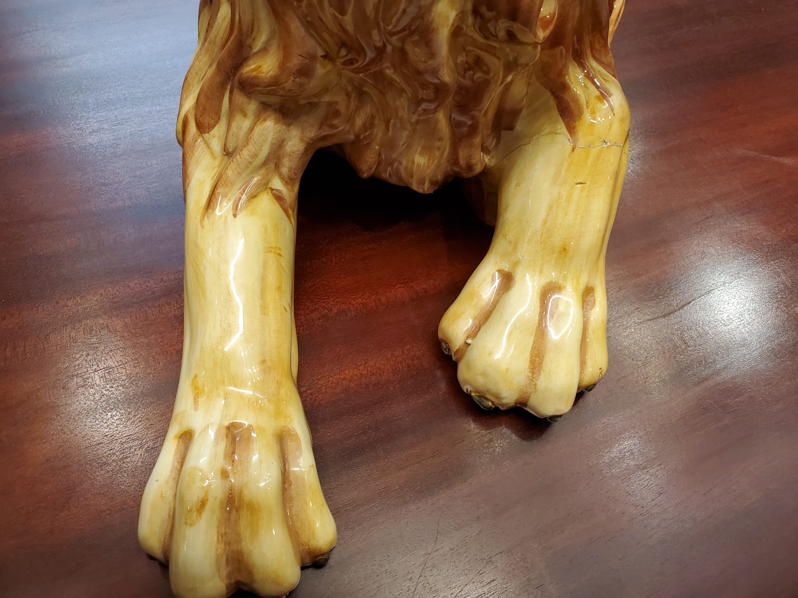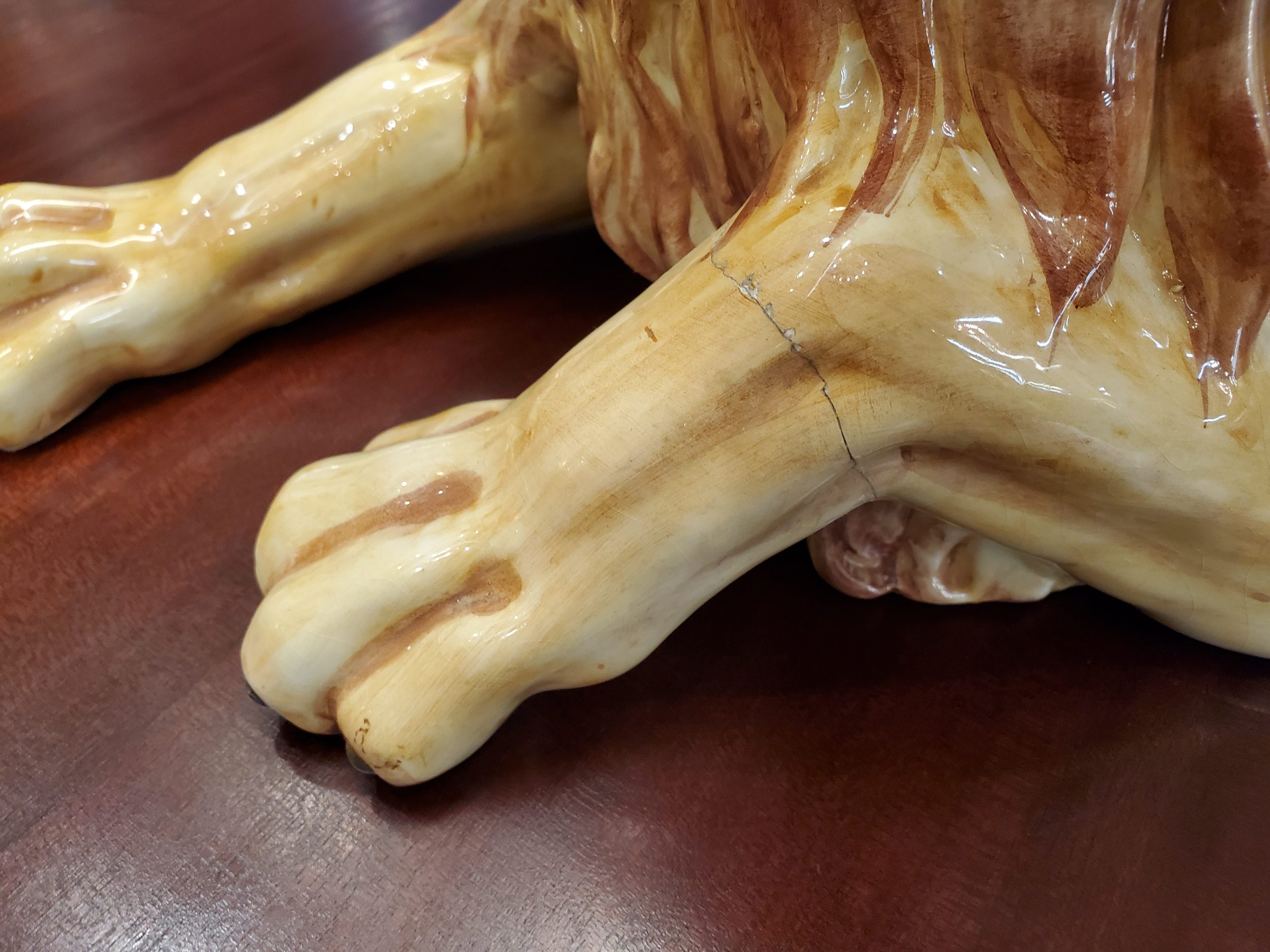 The lion has a small chip on the back of his head and a paw has been restored.