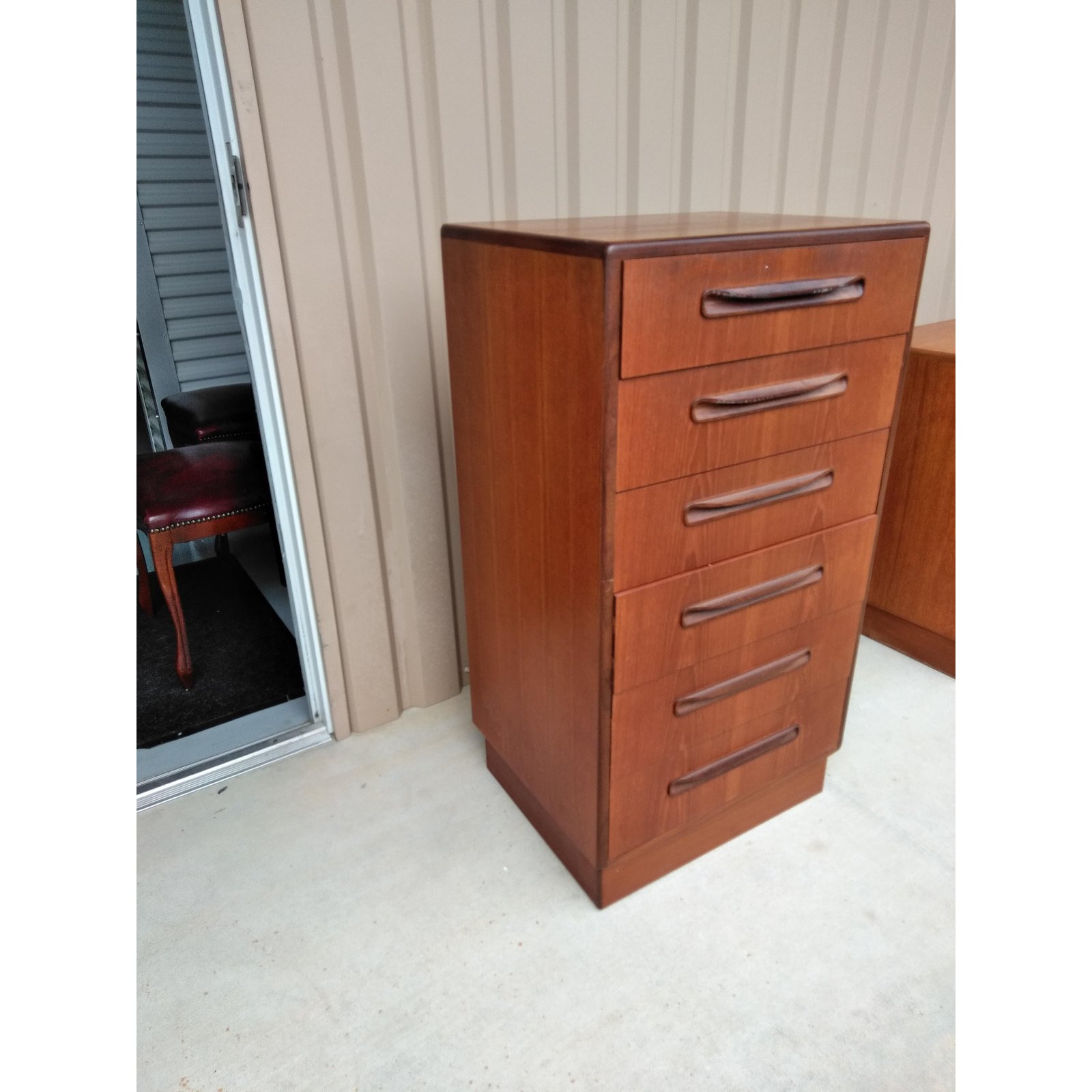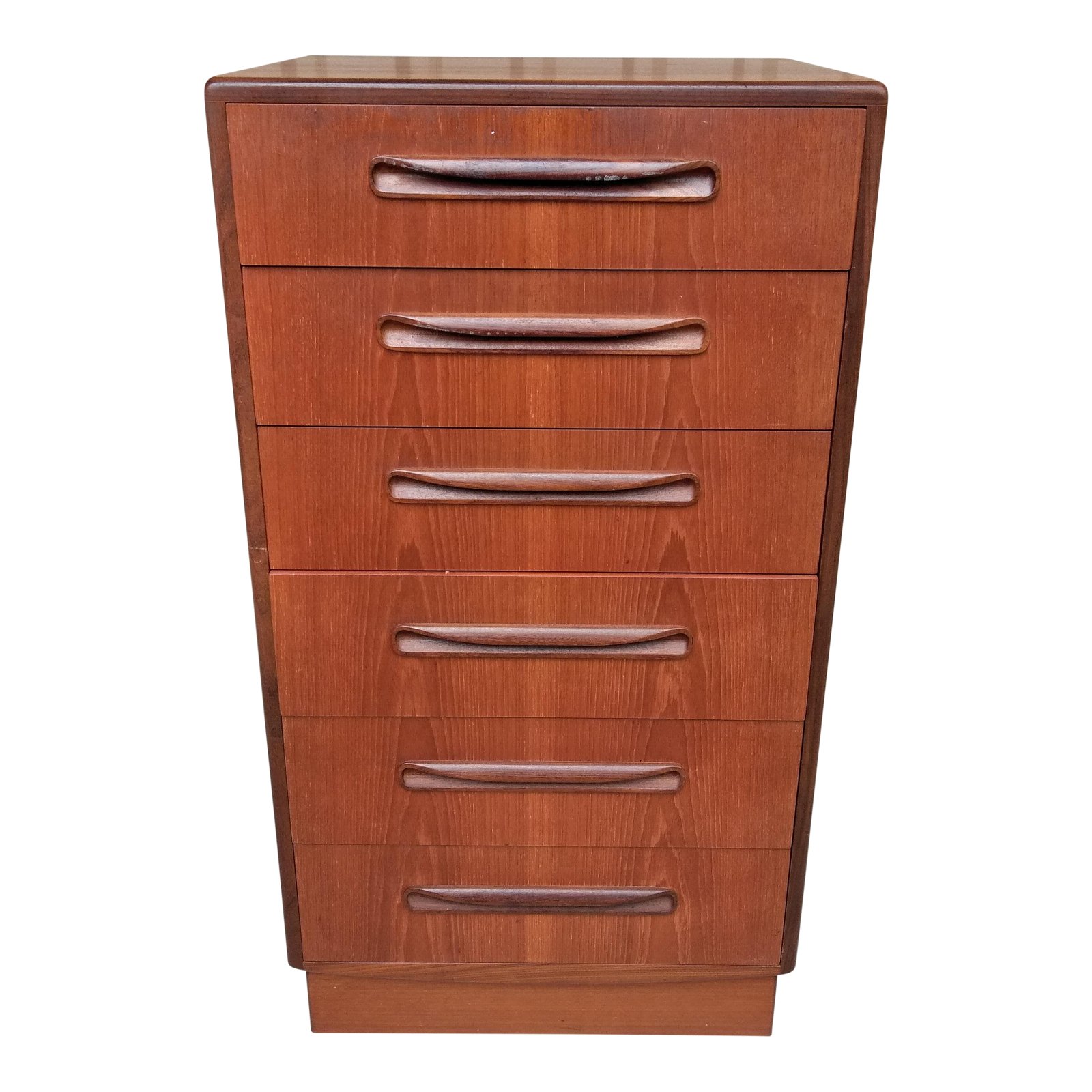 Mid-century modern teak six drawer chest with afromosia handles. The piece is by G-Plan.
